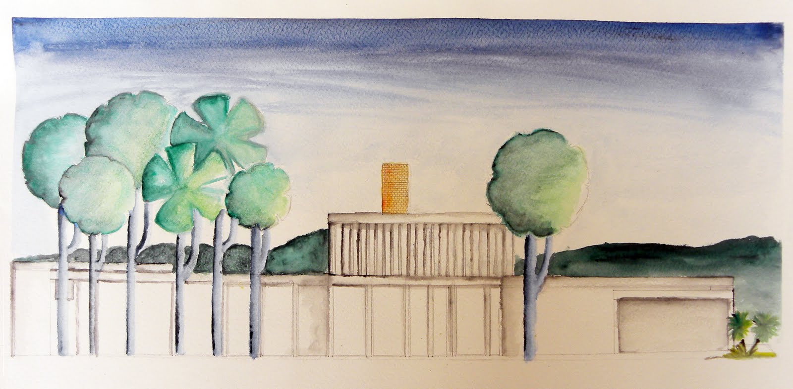 Relación con otras asignaturas:. Se le llama dibujo efectista al que pretende causar un pronto efecto, consta de árboles, cielo, nubes. Proceso de ambientación de un plano, y coloreado con plumones chartpak sobre papel albanene.